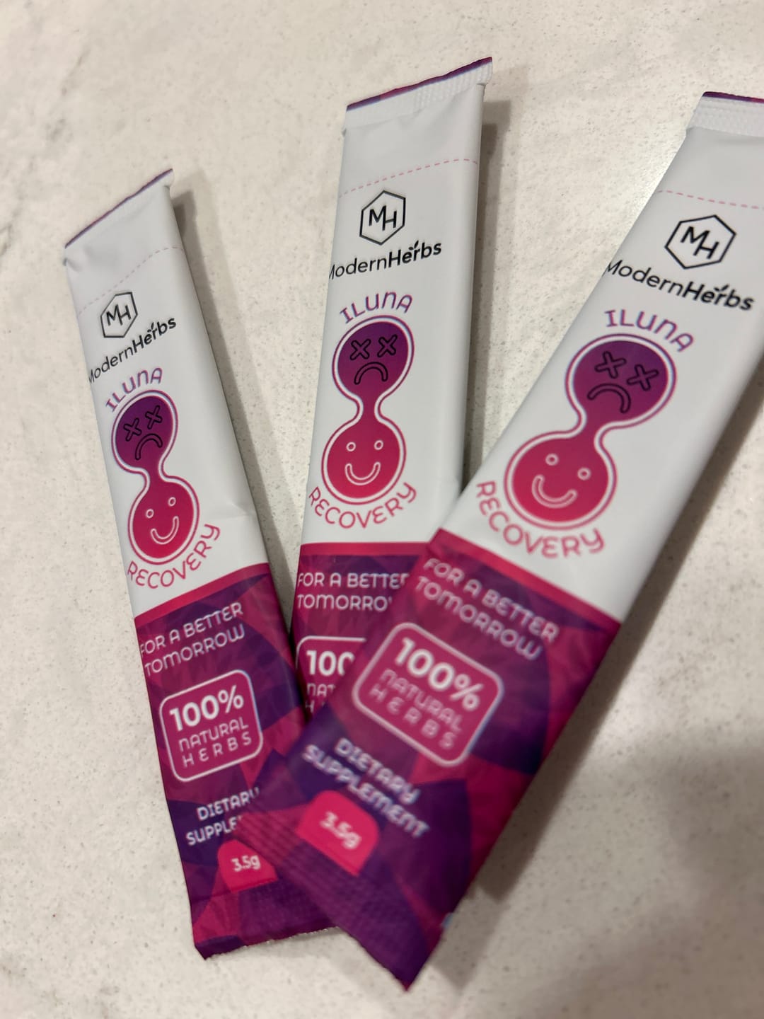 Simply tear open one single-serve ILUNA pocket, pour its contents into your moth and swallow with water. Please do not chew ILUNA as the contents are in solid form.