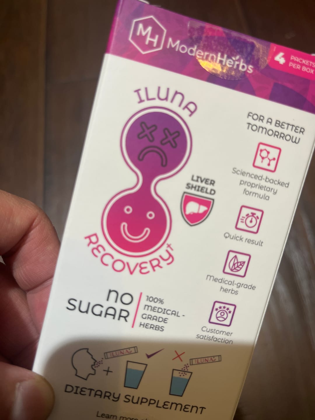 • Take 1-2 packets of ILUNA 15-30 min before drinking for best results.
